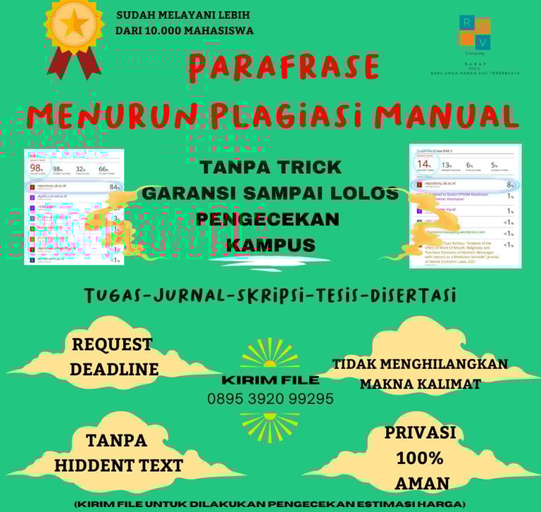 Jasa parafrase penurun plagiasi murni manual tanpa trick dan bergarasansi, harga dapat dikonsultasikan melalui