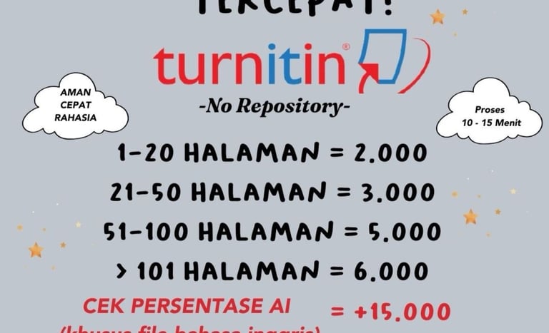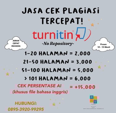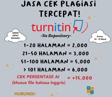 Layanan cek plagiasi Turnitin dan parafrase manual murni tanpa trick yang sudah membantu lebih dari 10.000 mahasiswa.